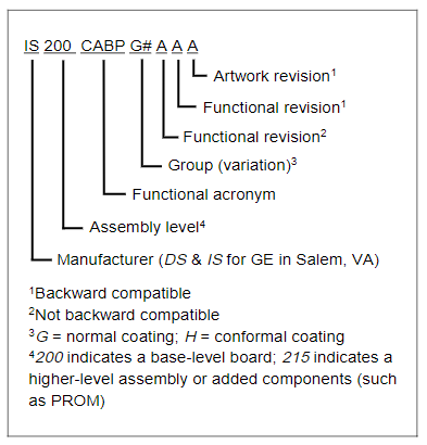 GE part number usually printed near the edge of the board. The part number including so much information about the board, we can know identify them with a glance.