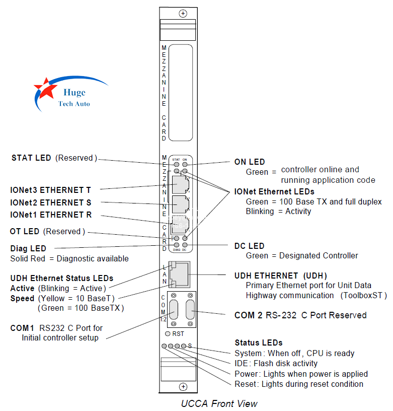 IS215UCCAM03A شامل IS215UCCAH3 به همراه 128 مگابایت حافظه فلش، 128 مگابایت DRAM و IS200EPMC است. IS215UCCAH3 یک برد تک اسلاته است که از پردازنده Intel® Celeron™ با فرکانس 650 مگاهرتز استفاده میکند. یک پورت اترنت 10BaseT/100BaseTX (RJ-45) اتصال به Unit Data Highway (UDH) را فراهم میکند. دو سایت PCI Mezzanine Card (PMC) و یک تایمر watchdog وجود دارد. برد پردازنده، موتور محاسباتی کنترلر Mark VIe است. IS200EPMC کارت کمکی IS215UCCAH3 است.